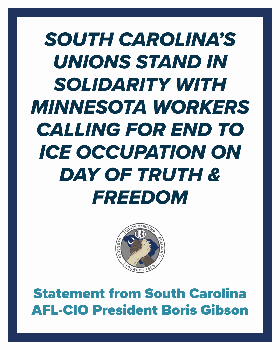 South Carolina AFL-CIO President Boris Gibson released the following statement about the Day of Truth & Freedom on Friday, Jan. 23 in Minnesota: